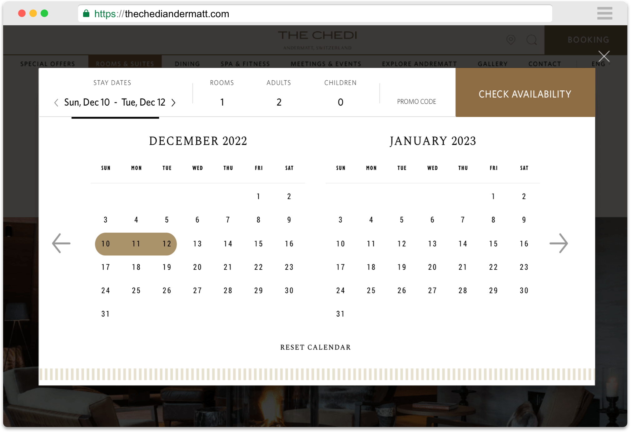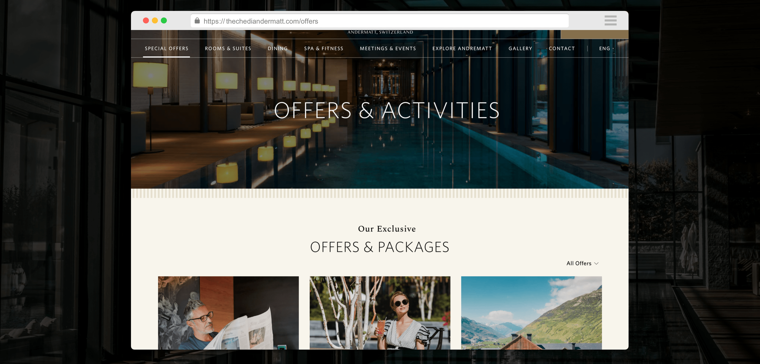 Chedi Andermatt turned to Cendyn to create a compelling new website designed to increase conversions and create a more engaging user experience that fully captured the resort’s abundance of activities and Michelin-ranked restaurants, while also educating guests about the region. To showcase these elements, we created design patterns that are intuitive, elegant, and easy to navigate.